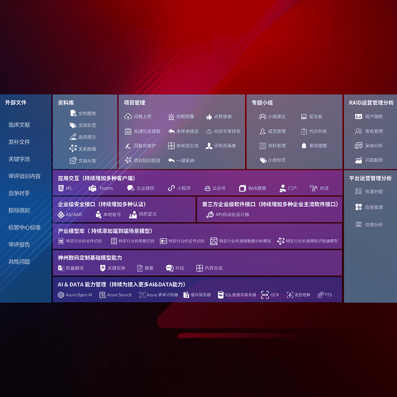 医疗器械产品上市前,,,要熟悉严格与繁复评审标准,,,,整理分析监管机构指导文件中的海量信息。。。。企业急需一个智能化解决方案,,,提升知识管理效率,,,,提高评审通过率,,,,以提升其市场竞争力。。。